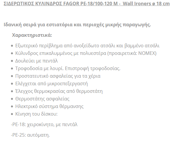 ΣΙΔΕΡΩΤΗΡΙΟ FAGOR PE-18/100-120 M