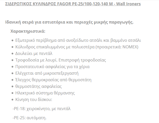 ΣΙΔΕΡΩΤΗΡΙΟ FAGOR PE-25/100-120-140 M
